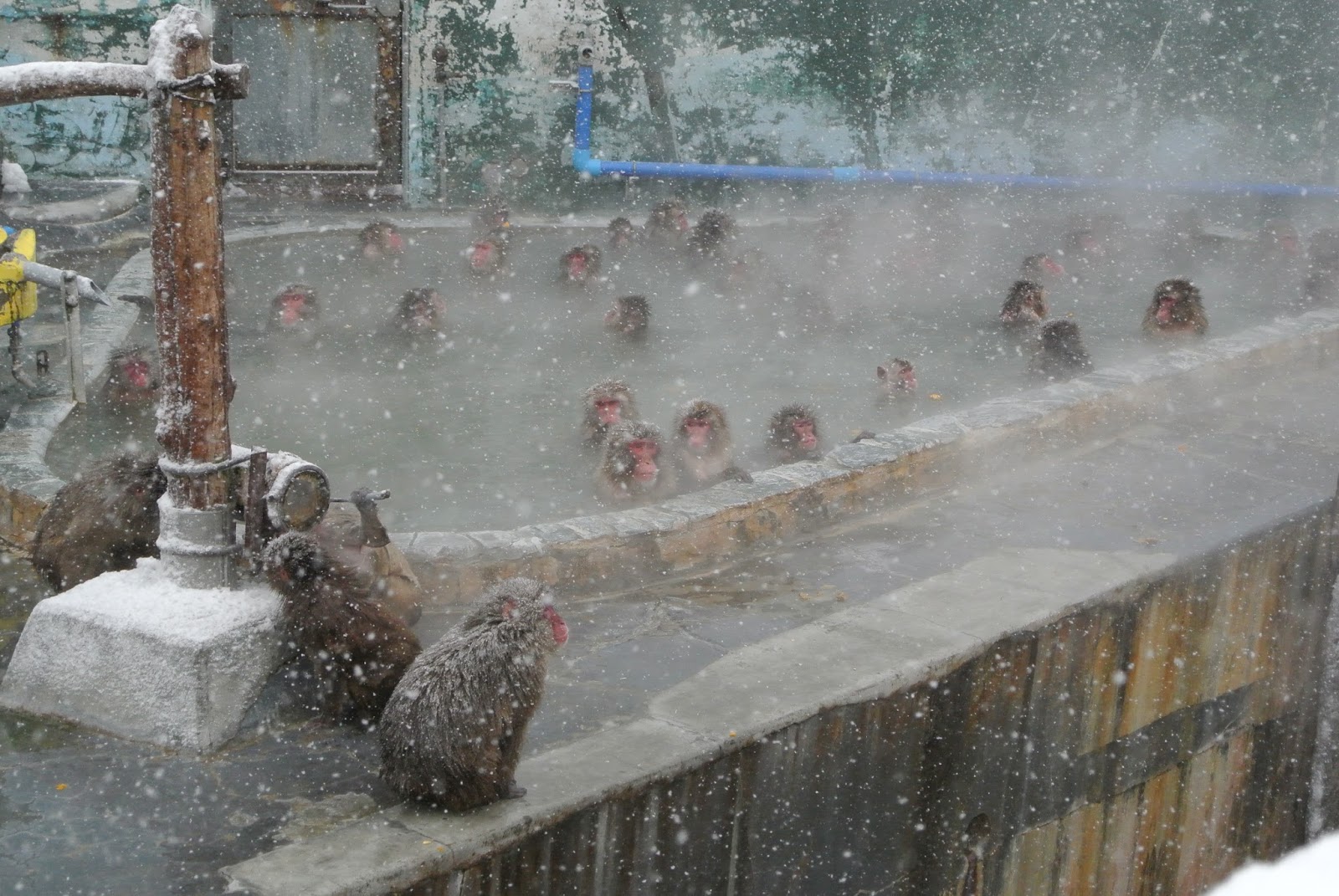 看看園內的日本獼猴在寒冬中於溫泉浸泡 |